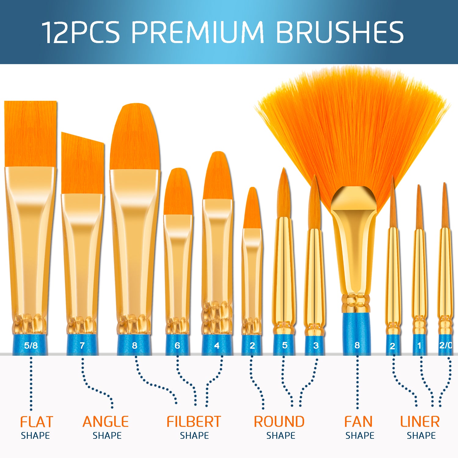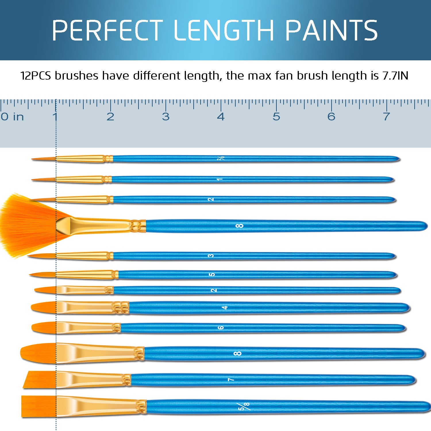 🌈【14PCS Paint Brushes】:These brushes with different sizes and shapes, offer the perfect small and big brush tips for each phase of all artistic painting projects, which ensure that we can always use the right paint brush during drawing.(12PCS with 2PCS Free Gfit)