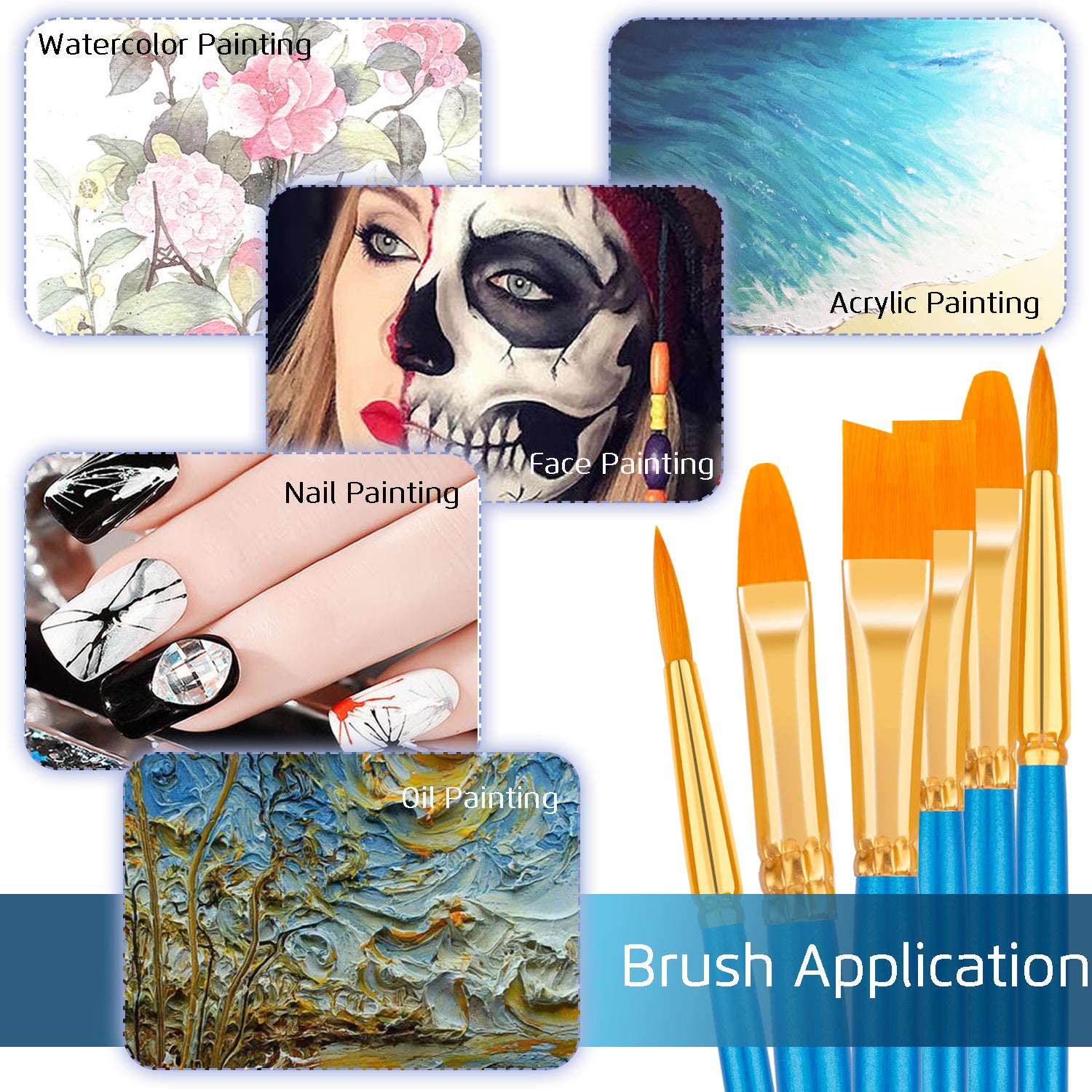🌈【No Shedding Brush Hair】: Durable synthetic nylon hairs was double clamped with extra strong and rust-proof nickel ferrules. Each paint brush is made by individually hand crafted and excellent workmanship, so no hair shedding from sturdy wooden handles. These paint brushes is long life-time, No worry about performance or appearance after multiple painting and cleaning.
