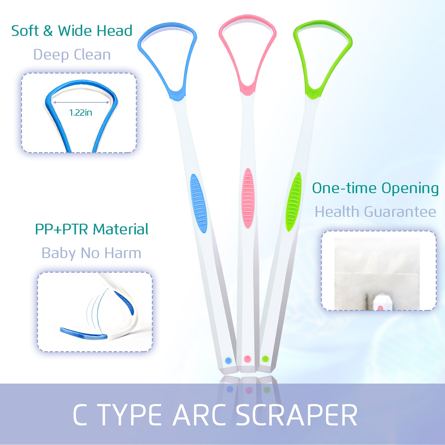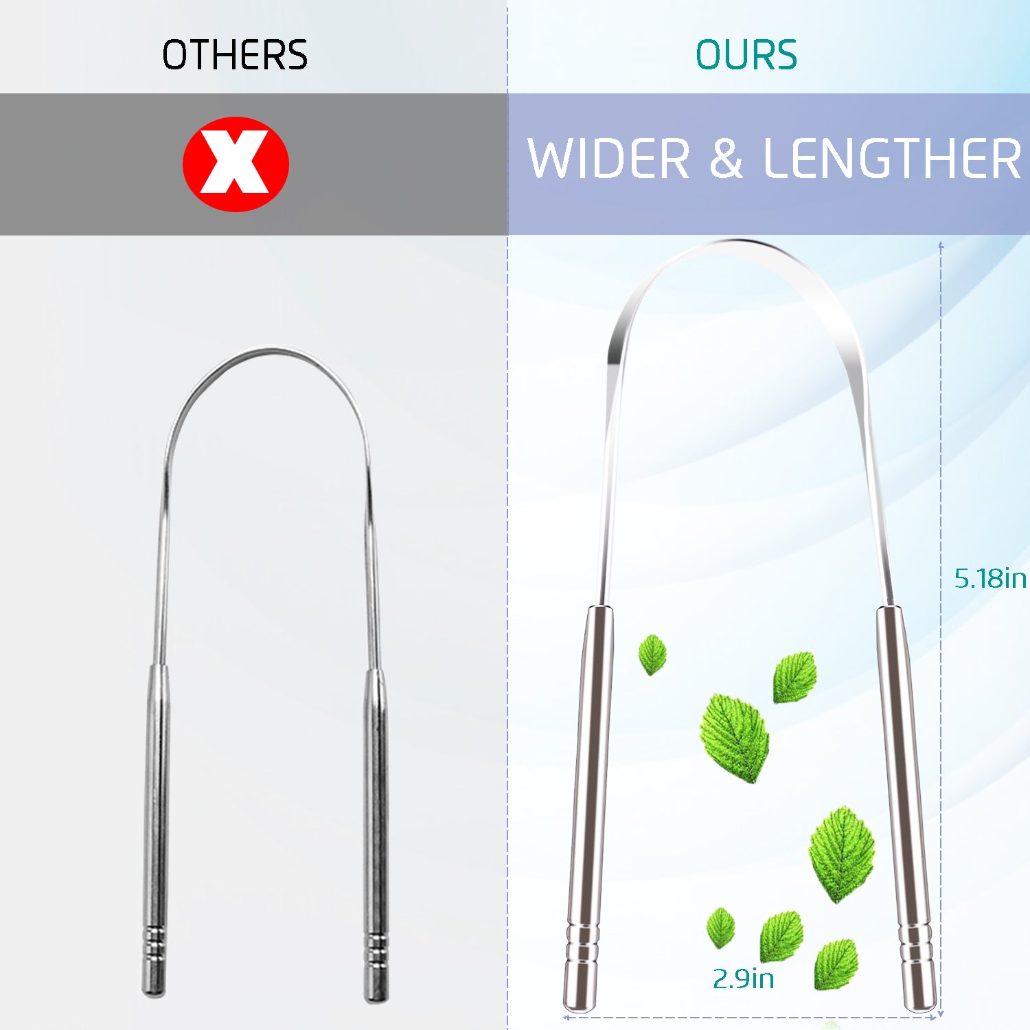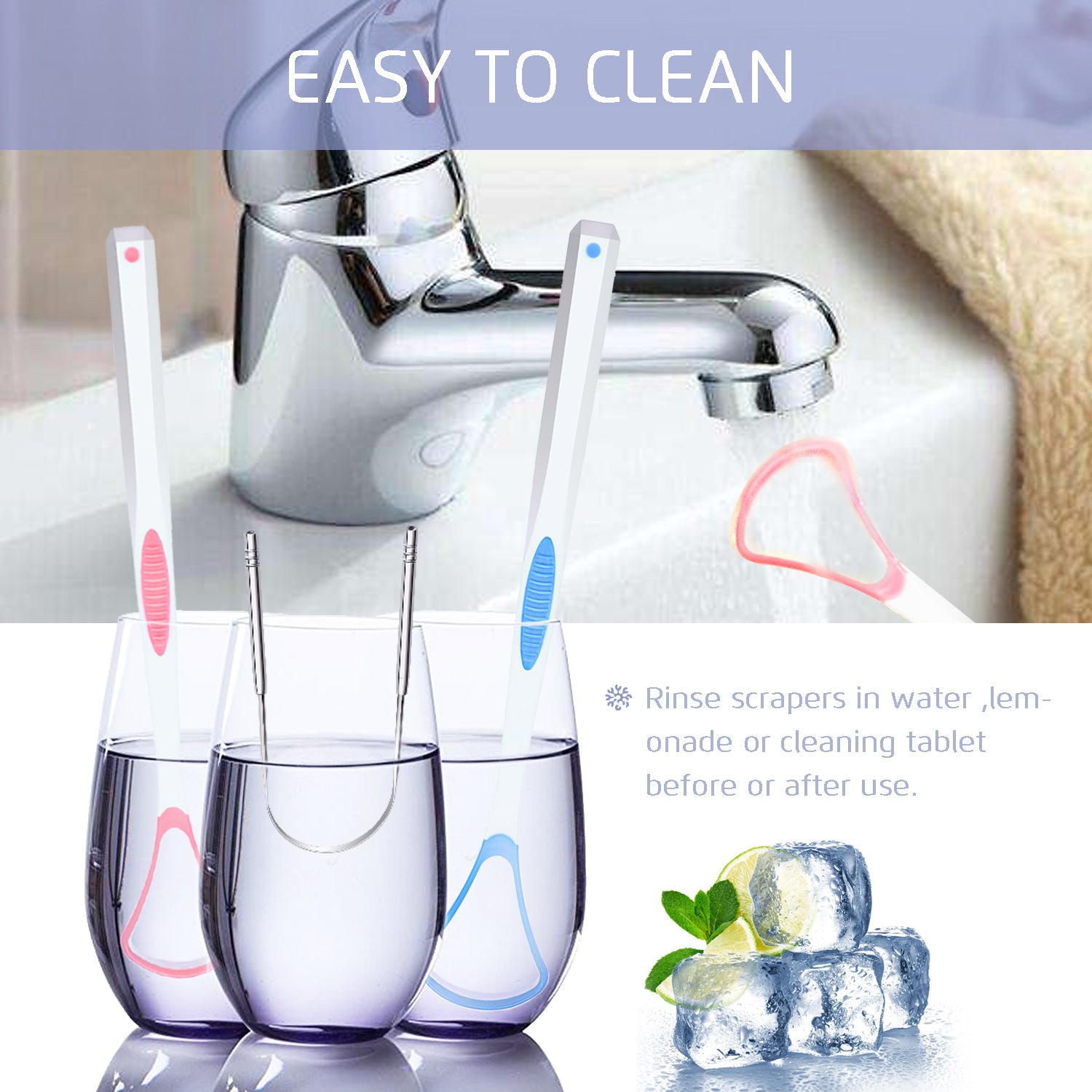 💎【Easy to Use and Clean】: Just hold the tongue cleaner with one hand to scrap from the back of our tongue to the front. Repeat several times, Done! Then clean the tools by water, very simple. No special liquid need.