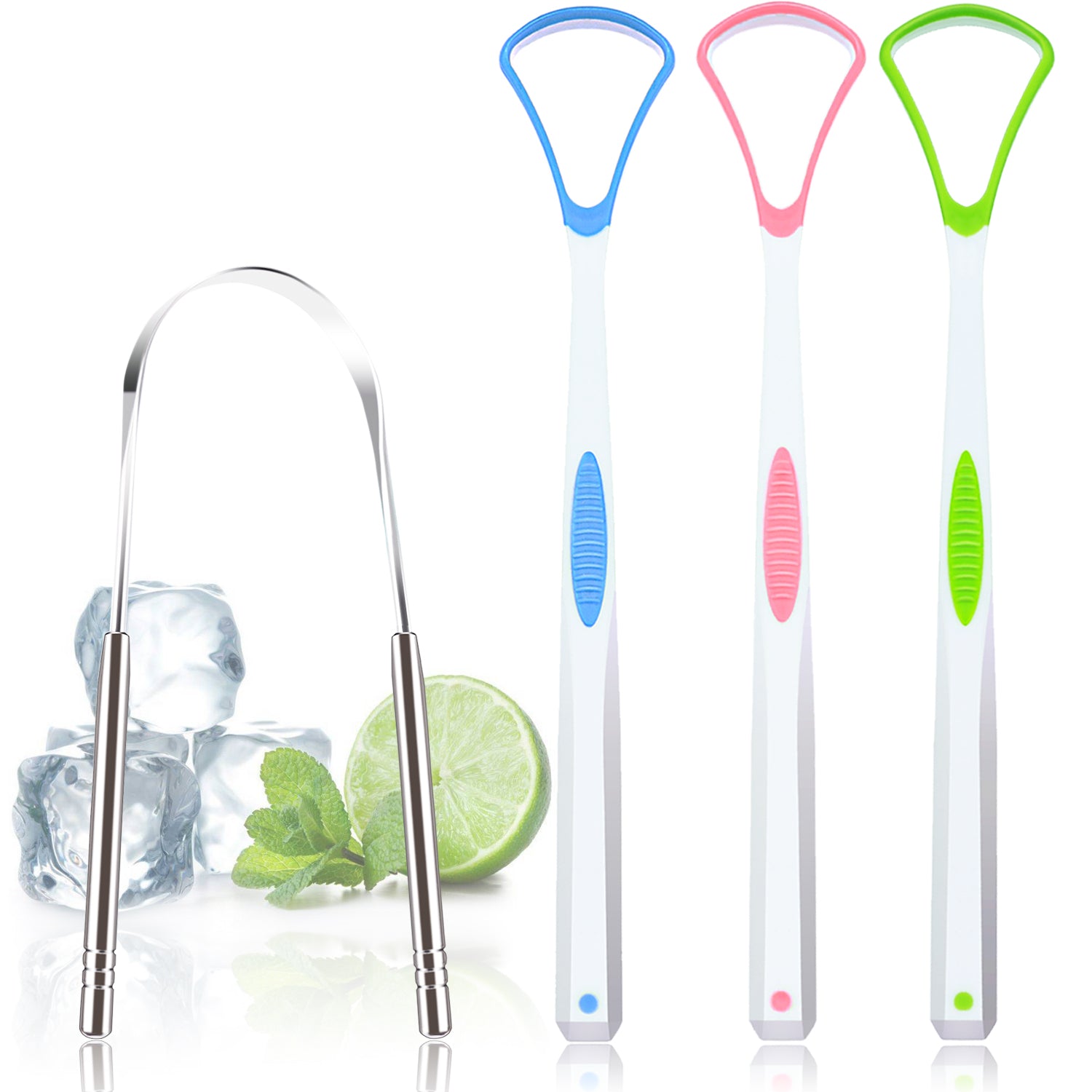 4PCS Tongue Scraper, Stainless Steel Tongue Cleaners, 100% BPA Free Fresher Tongue Tools, Healthy Oral Hygiene Brushes, Medical Grade Reusable Stainless Steel, Eliminate Bad Breath