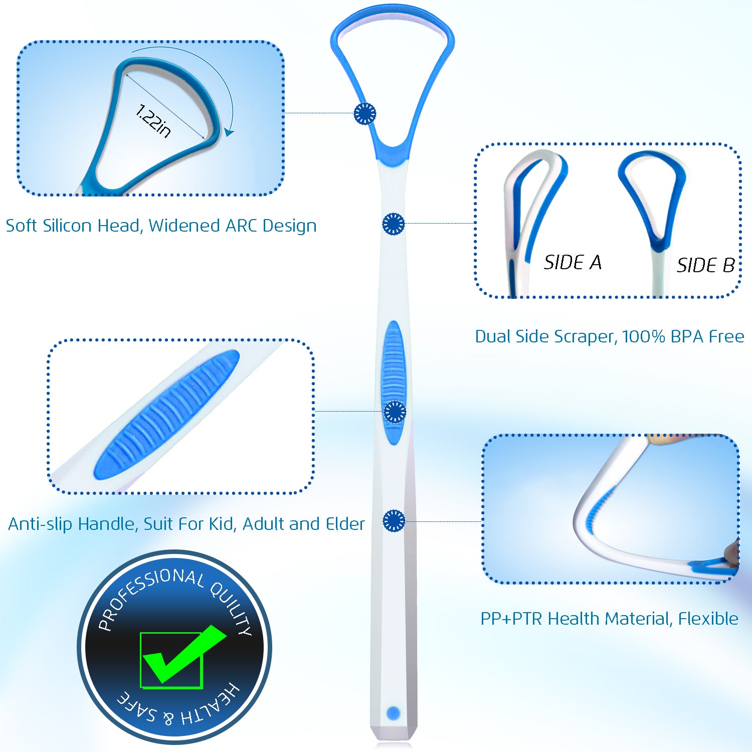2.Tongue cleaning is an important oral hygienic practice, it can help to solve a variety of health issues, such as improving taste sensation, helping digestion, and thus boosting our immune system, improving body health.