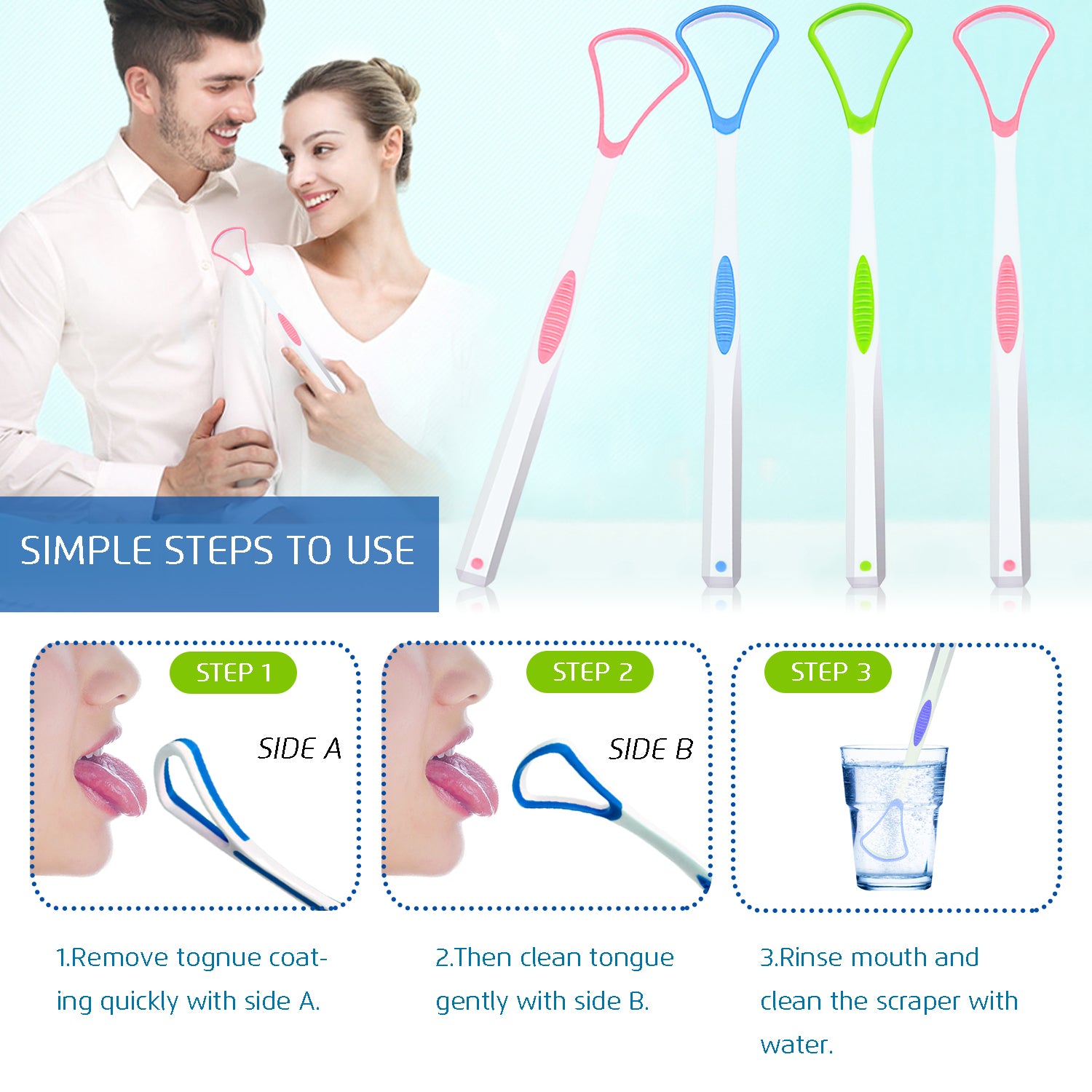 1.Clinical studies have shown that using a tongue cleaner on a daily basis can remove dead skin cells, dirt and food debris from the surface of the tongue, then get rid of bad breath.
