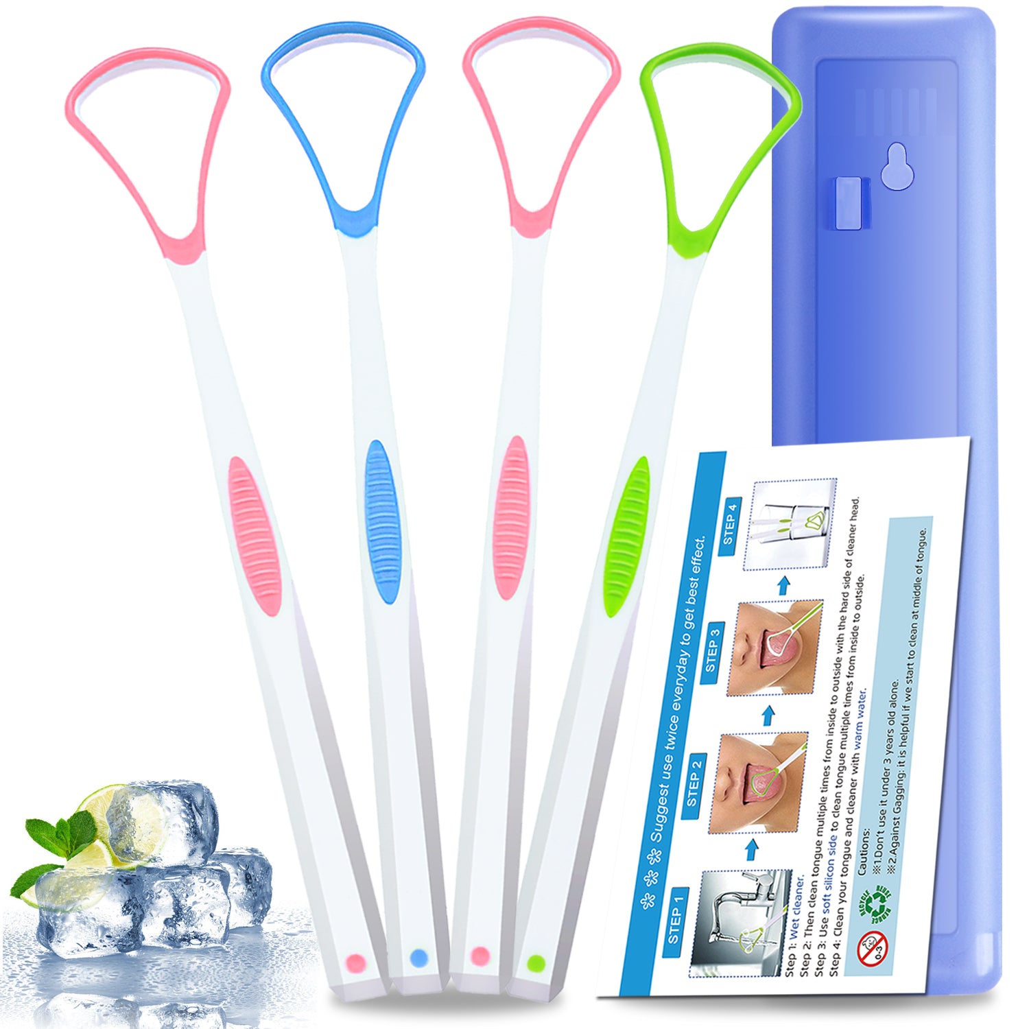 🍀【CONVENIENT TO CARRY】These 4PCS tongue scrapers set come with a premium travel storage case, can be convenient to carried for multi-place using, such as home, work, school, trip, camping or any other situation.